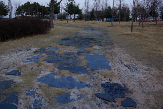üÀ°°ø¿ø ±â³äž ¾Õ¿¡ ÁÖÂ÷¸¦ Çϰí Ã౸ÀåÀ¸·Î ³»·Á¿À´Â ªÀº »êÃ¥·Î¿¡¼ ºÎ¼Áø µ¹°¡·ç¿¡ ¹Ì²ô·¯Á® ³Ñ¾îÁø °Í. ´õ¿íÀÌ ±× »êÃ¥·Î´Â ±æÀ̴ ªÁö¸¸ ¾à°£ÀÇ °æ»ç°¡ ÀÖ¾î ³»·Á¿À´Â »ç¶÷µéÀº »ê»êÁ¶°¢ ³ª Èð¾îÁø µðµõµ¹ÀÇ ¹Ì²ô·¯¿òÀ» °¨´çÇϱ⿡ ¹÷Â÷´Ù.