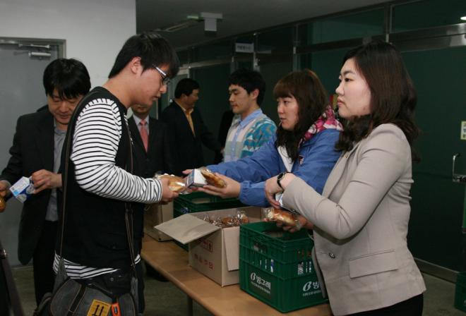 ¿ø±¤´ëÇб³(ÃÑÀå Á¤¼¼Çö)´Â 1ÇбⰡ ½ÃÀÛµÈ Áö³ 3¿ùºÎÅÍ ÃÑÇлýȸ¿Í ÇÔ²² ¾ÆÄ§ ÀÏÂï µµ¼°ü¿¡ ³ª¿À´Â ÇлýµéÀ» À§ÇÑ °£½ÄÁ¦°ø¿¡ ³ª¼ Çлýµé·ÎºÎÅÍ Å« È£ÀÀÀ» ¾ò°í ÀÖ´Ù.