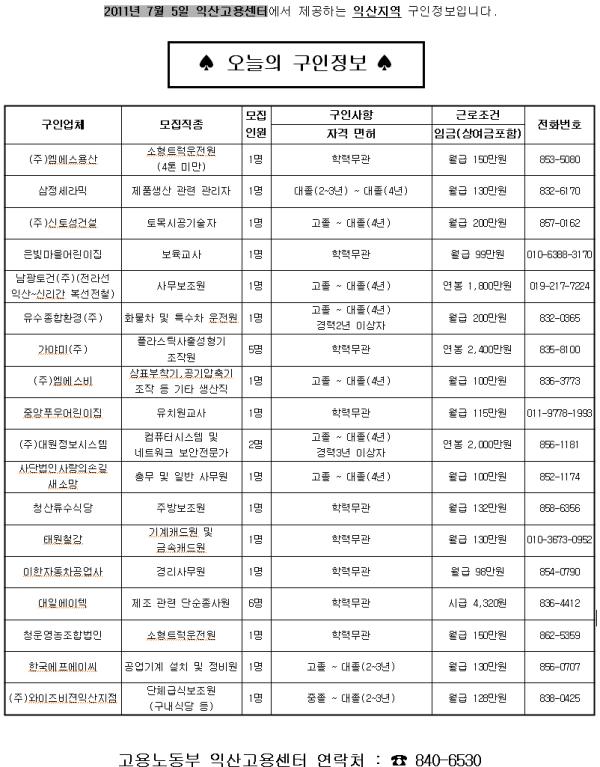 7¿ù11ÀÏÀÚ ÀÍ»ê °í¿ëÁ¤º¸