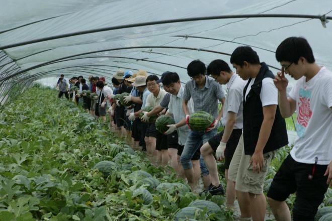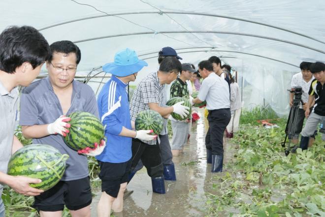 ÁøÃâÀÔ·Î¿Í ¸¶´çÀÌ Ä§¼öµÈ ½ÅÈﵿ ±¤ÀüÀÚ »ç¿ø¾ÆÆÄÆ®¿¡´Â ³ó°¡º¸À¯ Æ®·¢ÅÍ¿ë ´ëÇü¾ç¼ö±â¸¦ µ¿¿øÇØ ÆßÇÎ ÀÛ¾÷À» ÇÏ´Â ÇÑÆí 7°ø¼ö¿©´ÜÀÇ °í¹«º¸Æ®¸¦ Áö¿øÇÏ°í °¡±³¸¦ ¼³Ä¡, ÁøÀԷθ¦ È®º¸Çß´Ù.