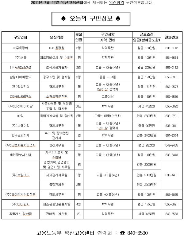 7¿ù18ÀÏÀÚ ÀÍ»ê °í¿ëÁ¤º¸