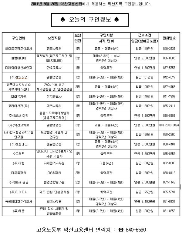 9¿ù 26ÀÏÀÚ ÀÍ»ê °í¿ëÁ¤º¸