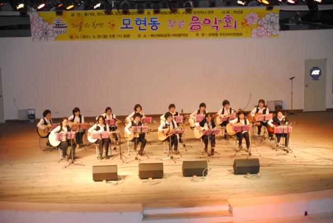 ¸ðÇöµ¿ ÁÖ¹ÎÀÚÄ¡À§¿øÈ¸(À§¿øÀå ±è¸¸Ã¶)°¡ ¸¶·ÃÇÑ ÀÌ À½¾Çȸ´Â ¸ðÇöÁÖ¹ÎÀÚÄ¡¼¾ÅÍ¿¡¼ ÁøÇàÇÑ °¢Á¾ ÇÁ·Î±×·¥ ¼ö°»ýµéÀÌ Ã⿬, ±×µ¿¾È °¥°í ´ÛÀº ±â·®À» ¸¾²¯ ¼±º¸¿´´Ù.