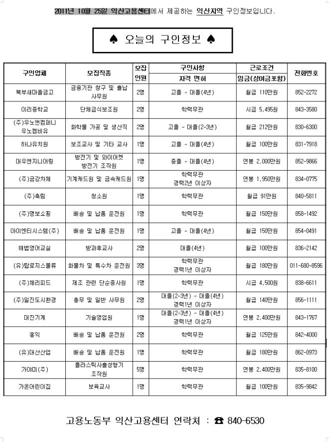 10¿ù31ÀÏÀÚ ÀÍ»ê °í¿ëÁ¤º¸