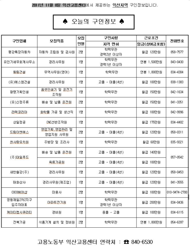 11¿ù14ÀÏÀÚ ÀÍ»ê °í¿ëÁ¤º¸