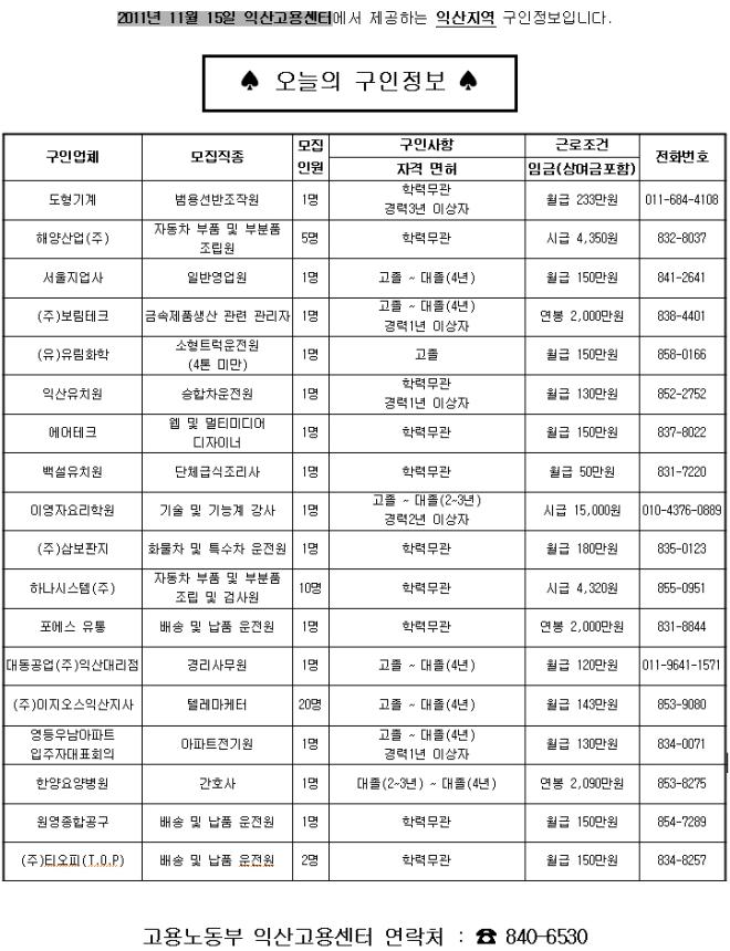 11¿ù 21ÀÏÀÚ ÀÍ»ê °í¿ëÁ¤º¸