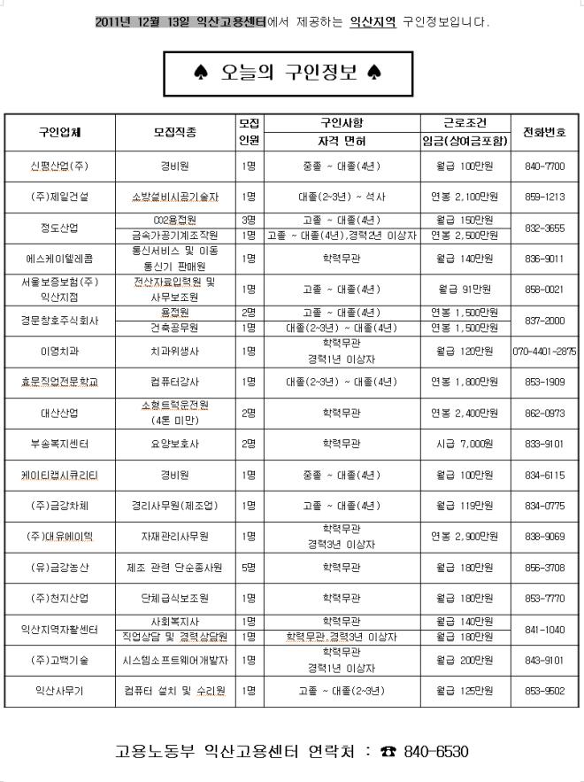 12¿ù19ÀÏÀÚ ÀÍ»ê °í¿ëÁ¤º¸