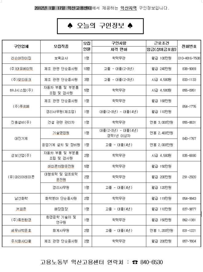 1¿ù 23ÀÏÀÚ ÀÍ»ê °í¿ëÁ¤º¸