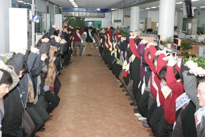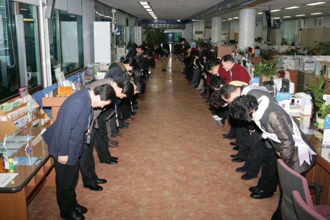 ½Ã Á¾Çչοø°ú Á÷¿øµéÀº ÀÍ»ê½ÃÀÇ ½Å³â ȵÎÀΠģÀýÀ» »ýȰÈÇϱâ À§ÇØ ¸ÅÀÏ ¾ÆÄ§ ¾÷¹«½ÃÀÛ Àü¿¡ ¼·Î ¾ó±¼À» ¸¶ÁÖº¸¸ç Ä£ÀýÀ» ´ÙÁüÇϰí ÀÖ´Ù.