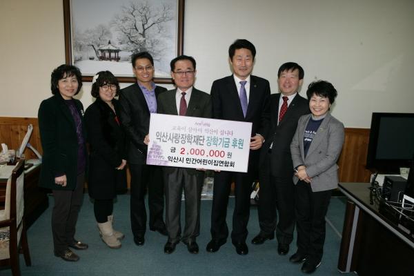 ÀÍ»ê½Ã ¹Î°£¾î¸°ÀÌÁý ¿¬ÇÕȸ(ȸÀå ³²±ÃÁÖ¼®)´Â 27ÀÏ ÀÍ»ê»ç¶ûÀåÇÐÀç´ÜÀ» ã¾Æ Áö¿ªÀÎÀçÀ°¼º¿¡ ½á ´Þ¶ó¸ç ÀÌÇѼö ÀÌ»çÀå(½ÃÀå)¿¡°Ô ÀåÇÐ±Ý 200¸¸¿øÀ» Àü´ÞÇß´Ù.