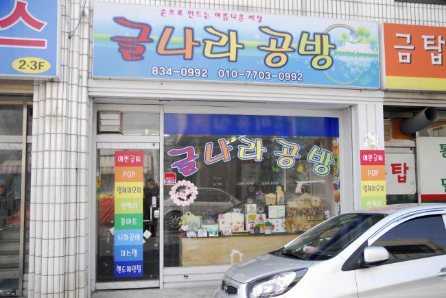 ½Åµ¿ ÁÖ¹ÎÀÚÄ¡¼¾ÅÍ ¸ÂÀºÆí °ñ¸ñ ½Åµ¿½ÃÀå ¹æÇâÀ¸·Î 100¿©m¿¡ À§Ä¡ÇÑ ¡®±Û³ª¶ó °ø¹æ(¢Ï834-0992).¡¯ °ÁÖÇö ´ëÇ¥(34)´Â Àç·á¸¸ ÁÖ¾îÁö¸é ¸ðµÎ ¿¹¼úÀÛǰÀ¸·Î ¸¸µé¾î³»´Â Ÿ°í³ ¼ÕÀçÁÖ ²ÛÀÌ´Ù.
