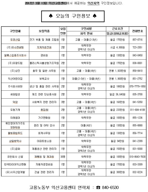 3¿ù19ÀÏÀÚ ÀÍ»ê °í¿ëÁ¤º¸