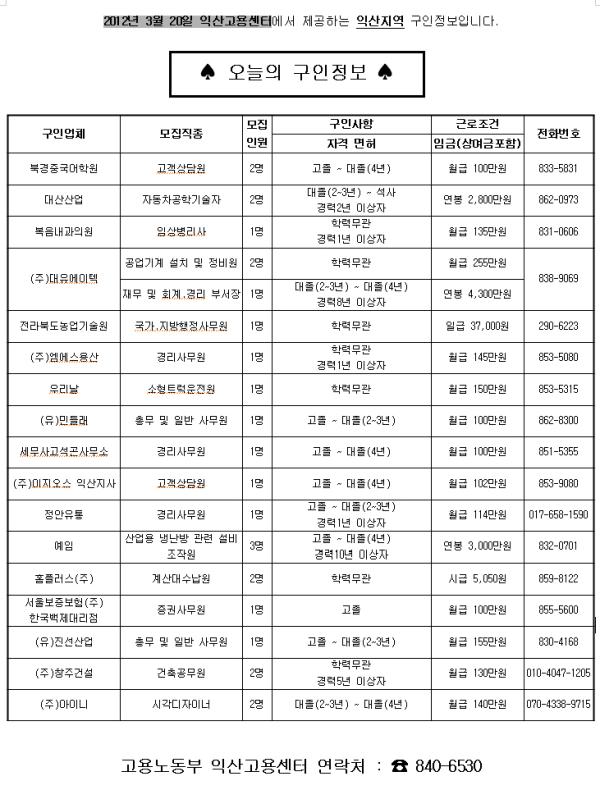3¿ù 26ÀÏÀÚ ÀÍ»ê °í¿ëÁ¤º¸
