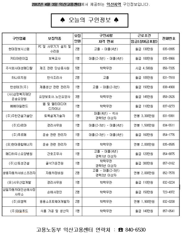 4¿ù 9ÀÏÀÚ ÀÍ»ê °í¿ëÁ¤º¸