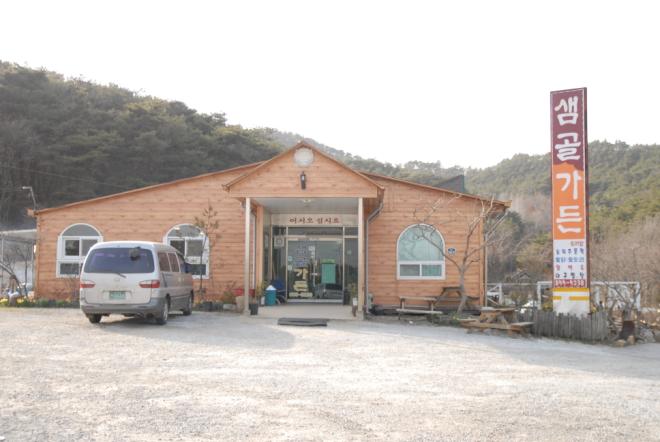 Àß ¶Õ¸° µµ·Î¸¦ µû¶ó ÇÔ¶ó¿¡¼ ¼þ¸²»ç ¹æ¸éÀ¸·Î 1kmÂë °¡´Ùº¸¸é ¿À¸®ÁÖ¹°·°À¸·Î À¯¸íÇÑ ¡®»ù°ñ°¡µç(´ëÇ¥ ±è¼ö¿ë)¡¯ÀÌ ³ª¿Â´Ù. »õ¼ÛÀÌ ¹ö¼¸À» µë»Ò ³ÖÀº °Ô Ư¡. ÁÖ¸»¿¡´Â °¡Á·°ú ¿¬ÀÎ, µî»ê°´ µî 200¿©¸íÀÌ ¸ô¸°´Ù. ¢Ï063-855-5238.