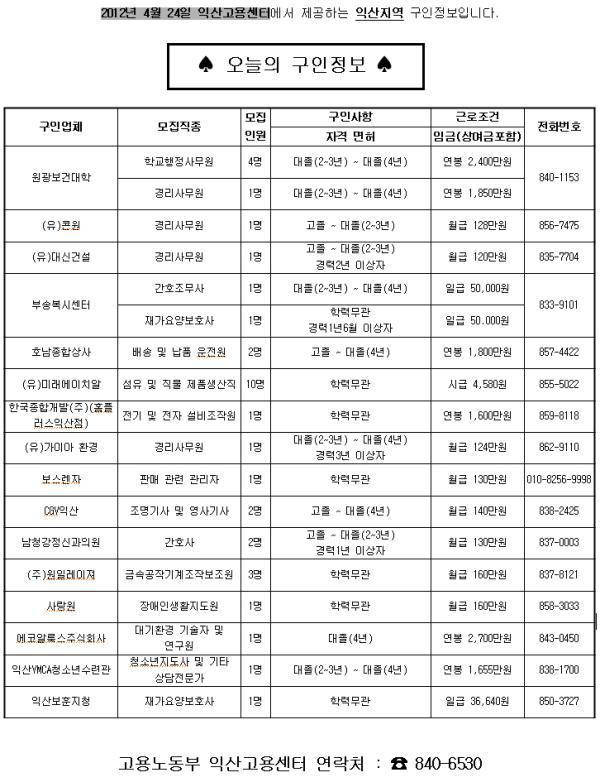 4¿ù 30ÀÏÀÚ ÀÍ»ê °í¿ëÁ¤º¸