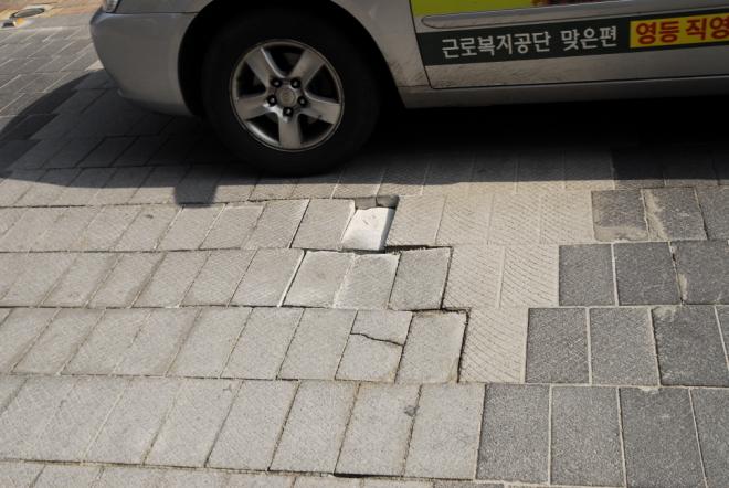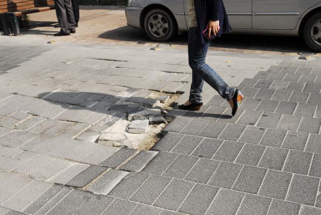 Áß¾Óµ¿ »ó¡°Å¸® °÷°÷ÀÇ º¸µµºí·ÏÀÌ ±úÁö°í ¿òÇ« ÆÄ¿© ½Ã¹ÎµéÀÇ ºÒÆíÀ» »ç°í ÀÖ´Ù.