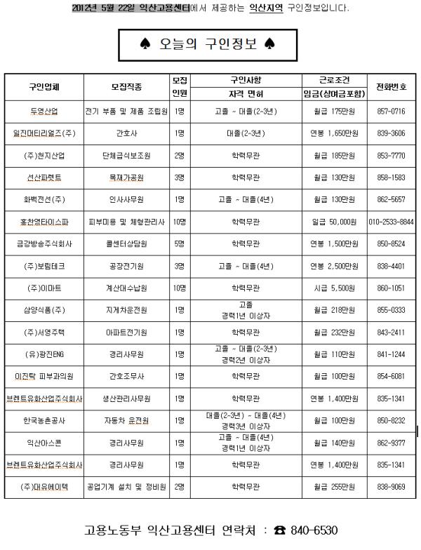 5¿ù 28ÀÏÀÚ ÀÍ»ê °í¿ëÁ¤º¸
