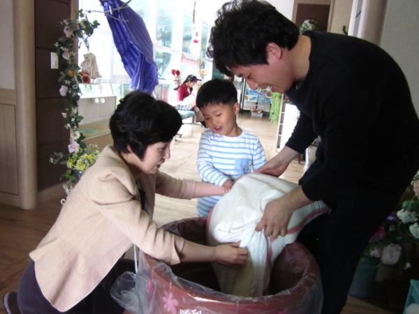 ¾î¸°À̵éÀº ÀÍ»êÇູ³ª´®¸¶ÄÏ¿¡ ½Ò 200kg°ú Àú±ÝÅë 3°³, ¾Æ³¢´ø ÀÎÇü°ú ¿Ê 300¿©Á¡À» Àü´ÞÇß´Ù.