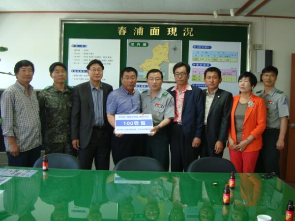 ÃáÆ÷¸é ÀÌÀå´Ü ÇùÀÇȸ(ȸÀå ½Åµ¿Çå)¿Í ÃáÆ÷¸é ÁÖ¹ÎÀÚÄ¡À§¿øÈ¸(À§¿øÀå ±èö¼ö)´Â 23ÀÏ ÃáÆ÷¸é»ç¹«¼Ò ȸÀǽǿ¡¼ ÇâÅ俹ºñ±º ÀÍ»ê½Ã ÃáÆ÷¸é´ë(¸é´ëÀå ±è¿µÅÃ)¸¦ ã¾Æ À̵éÀ» °Ý·ÁÇÏ°í ¹ßÀü ±â±ÝÀ¸·Î 100¸¸ ¿øÀ» ³»³õ¾Ò´Ù.