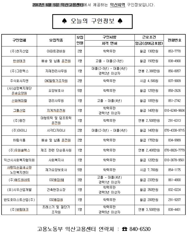 6¿ù 11ÀÏÀÚ ÀÍ»ê °í¿ëÁ¤º¸