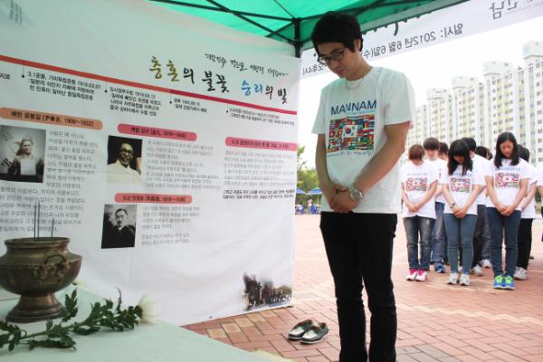 ¡®ÃæÈ¥ÀÇ ºÒ²É ½Â¸®ÀÇ ºû¡¯À̶ó´Â ÁÖÁ¦·Î ¿¸° À̹ø Çà»ç´Â 6ÀÏ ¿ÀÀü 10½ÃºÎÅÍ ¿ÀÈÄ 4½Ã±îÁö ÇÔ»ç¸ð ÀÚ¿øºÀ»ç´Ü 50¿©¸íÀÌ Âü¿©ÇÑ °¡¿îµ¥ ¿·È´Ù. À̵éÀº ´ëÇüÅÂ±Ø±â Æ÷ÅäÁ¸À» ¸¸µé¾î »çÁøÀ» Âï¾îÁÖ°í, űرâ Á¶±â °Ô¾ç¹ý üÇè ÇÁ·Î±×·¥°ú ¹«±ÃÈ ²É ½ÄÀçÇà»ç¸¦ ÁøÇàÇÏ¸ç ³ª¶ó¸¦ À§ÇØ ¸ñ¼û ¹ÙÄ£ ¼ø±¹¼±¿µéÀÇ »À¾ÆÇ Èñ»ý¿¡ ´ëÇØ »ý°¢ÇØ º¸´Â ÀÇ¹Ì ÀÖ´Â ÀÚ¸®¸¦ ¸¶·ÃÇß´Ù.
