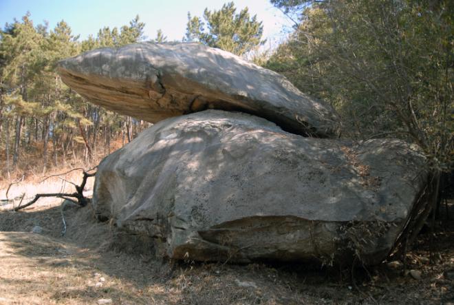 ÀÌ ¸¶À»¿£ ¸í¹°ÀÌ Çϳª ÀÖ´Ù. ¶á ¹ÙÀ§(Ý©à´)´Ù. ¸¶À» À§ÂÊ Á¶±×¸¶ÇÑ °øÅÍ¿¡ ÅÊũó·³ »ý±ä Å« ¹ÙÀ§ 2°³´Ù. ¹ÙÀ§¿¡ ¶Ç ÇϳªÀÇ ¹ÙÀ§°¡ ¾ù°¥·Á ¾ñÇô Àִµ¥ ¸ð½ÀÀÌ ½Å¹°°ú °°´Ù.