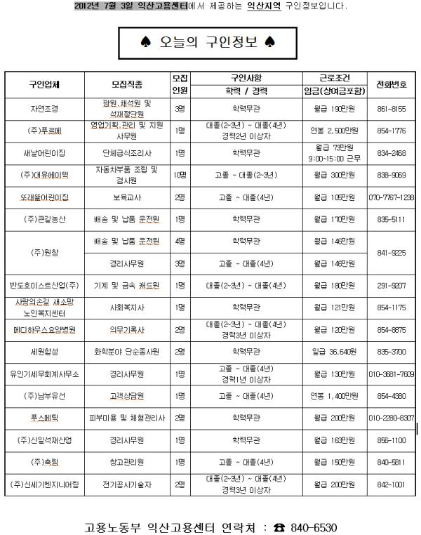 7¿ù 9ÀÏÀÚ ÀÍ»ê °í¿ëÁ¤º¸