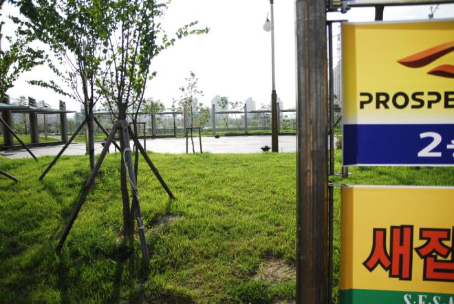 Çö¼ö¸· °Ô½Ã´ë°¡ ¼³Ä¡µÈ ¹®Á¦ÀÇ Àå¼Ò´Â ¹è»ê ¿¡ÄÚ¸£ ÀÓ´ë¾ÆÆÄÆ® ¹æÇâ »ç°Å¸® ¸ðÅüÀÌ. Çѱ¹ÅäÁöÁÖÅðø»ç(LH) ÀüºÏº»ºÎ°¡ ¹è»êÅÃÁö°³¹ßÀ» ÇÏ¸é¼ Á¶¼ºÇÑ À½¾Ç ºÐ¼ö´ë Àüü¸¦ °¡·Î¸·¾Æ ¹Û¿¡¼ ÀüÇô º¼ ¼ö ¾øµµ·Ï ¸¸µé¾î ¹ö·È´Ù.