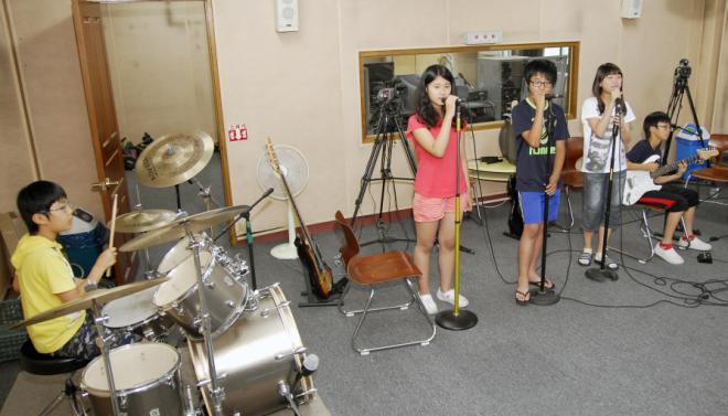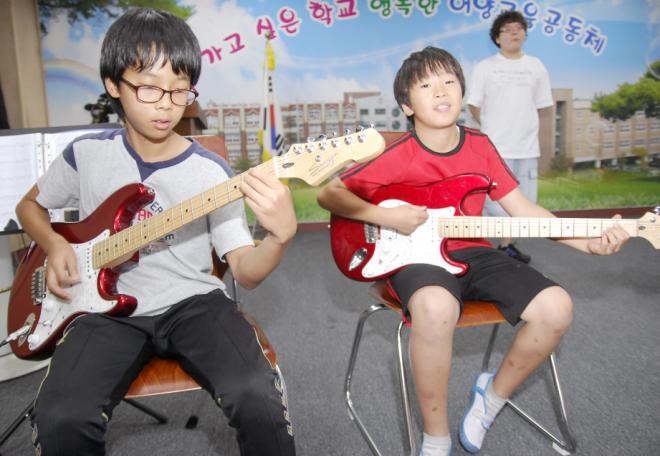 ¿ÀÈÄ 3½Ã ¾î¾çÃʵîÇб³(±³Àå °û±ÔÇö) ¹æ¼Û½ÇÀÌ Èï°Ü¿î À½¾Ç ¼Ò¸®·Î °¡µæÇÏ´Ù. ¸ÅÁÖ ¿ù¡¤È¡¤¸ñ¡¤±Ý¿äÀÏ ¿ÀÈÄ 3½ÃºÎÅÍ 5½Ã±îÁö ¾Ç±â¿¬ÁÖ »ï¸Å°æ¿¡ ºüÁ® ÀÖ´Â ¾ÆÀ̵é. ¹Ù·Î ¾î¾çÃÊ ±×·ì»ç¿îµå ¡®¾ÓÅ©(Ankh)¡¯ÀÇ ¿¬½ÀÇöÀåÀÌ´Ù.