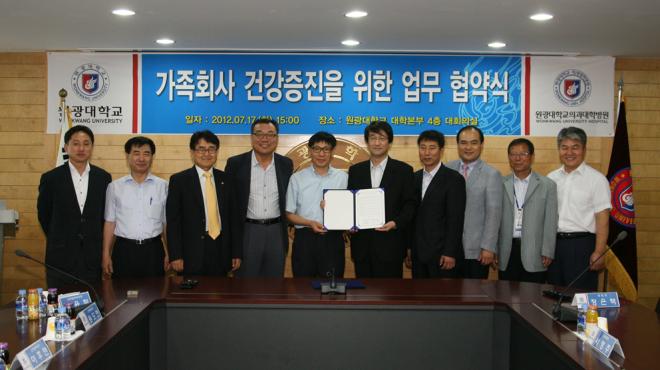 ¿ø±¤´ë »êÇÐÇù·Â´ÜÀº 17ÀÏ °¡Á·È¸»ç¿¡ Âü¿©ÇÑ ±â¾÷µéÀ» À§ÇØ ¿ø±¤´ëÇб³ Àǰú´ëÇаú »êÇÐÇù·Â ÀǷἺñ½º Çù¾à½ÄÀ» ü°áÇß´Ù.
