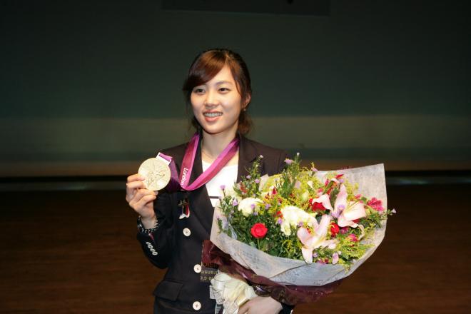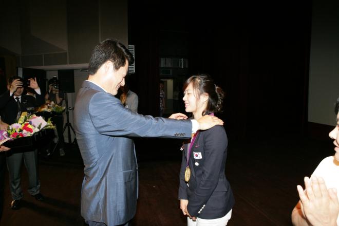2012 ·±´ø ¿Ã¸²ÇÈ¿¡¼ Çѱ¹ ¿©ÀÚ Ææ½Ì »ç»ó ÃÖÃÊ·Î ±Ý¸Þ´ÞÀ» ȹµæÇÑ ÀÍ»ê½Ãû ¼Ò¼Ó ±èÁö¿¬ ¼±¼öÀÇ È¯¿µÇà»ç°¡ ¿·È´Ù.