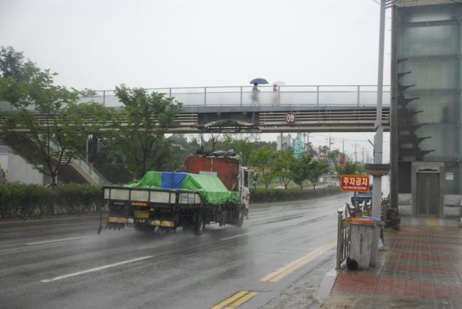 ÆÈºÀÃÊ ¾Õ º¸µµÀ°±³°¡ °úÀûÂ÷·®À¸·Î ¼ö³À» °Þ°í ÀÖ´Ù. Åë°ú ³ôÀÌ 4.5mº¸´Ù ÁüÀ» ³ô°Ô ½ÇÀº ȹ°Â÷ ¶§¹®¿¡ º¸µµÀ°±³°¡ ¼ºÇÒ ³¯ÀÌ ¾ø´Ù.