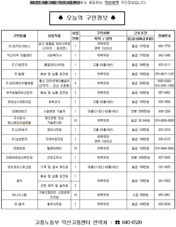 9¿ù 24ÀÏÀÚ ÀÍ»ê °í¿ëÁ¤º¸