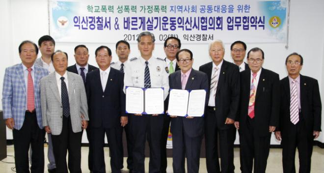 ÀÍ»ê°æÂû¼(¼Àå Á¶¿ë½Ä)¿Í ¹Ù¸£°Ô»ì±â¿îµ¿ ÀÍ»ê½ÃÇùÀÇȸ(ȸÀå Á¤±Ôö)°¡ Æø·Â ±ÙÀýÀ» À§ÇØ ¼ÕÀ» ¸ÂÀâ¾Ò´Ù.