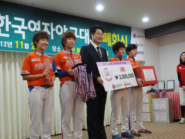 Çѱ¹¿©Àھ߱¸¿¬¸Í ±èÀ»µ¿ ȸÀå, ÀÌÇѼö ÀÍ»ê½ÃÀå, LGÀüÀÚ ±¸º»ÁØ ºÎȸÀå µîÀÌ °á½ÂÀü °üÀü ÈÄ Æóȸ½Ä¿¡ Âü¼®ÇØ ¼±¼öµéÀ» °Ý·ÁÇß´Ù.