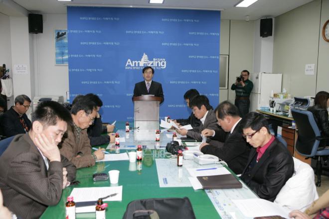 ÀÍ»ê½Ã °ü°èÀÚ°¡ ¾ÇÃë¿Í °ü·Ã ±âÀÚȸ°ßÀ» Çϰí ÀÖ´Ù.(ÀÍ»ê½Å¹® ÀÚ·á»çÁø)