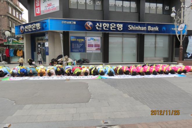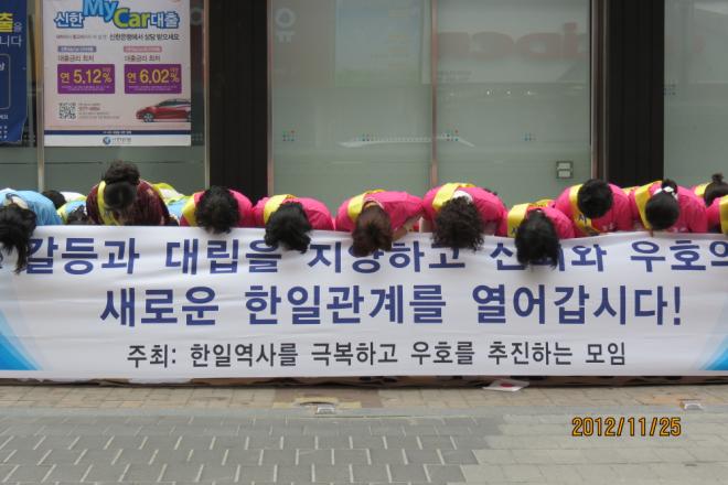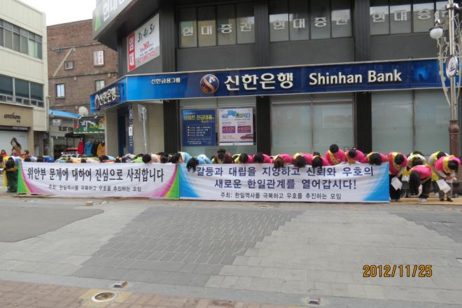 µµ³»¿¡ »ç´Â ÀϺ» ¿©¼º 60¿©¸íÀÌ ÀÍ»ê½Ã Áß¾Óµ¿ ½ÅÇÑÀºÇà ¾Õ¿¡¼ ÀϺ»±º À§¾ÈºÎ ¹®Á¦¸¦ »çÁËÇϰí ÇÑ¡¤ÀÏ ¿ìÈ£ ÁõÁøÀ» Ã˱¸ÇÏ´Â Çà»ç¸¦ °³ÃÖÇß´Ù.