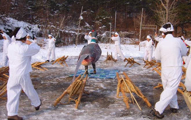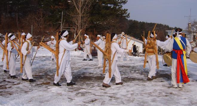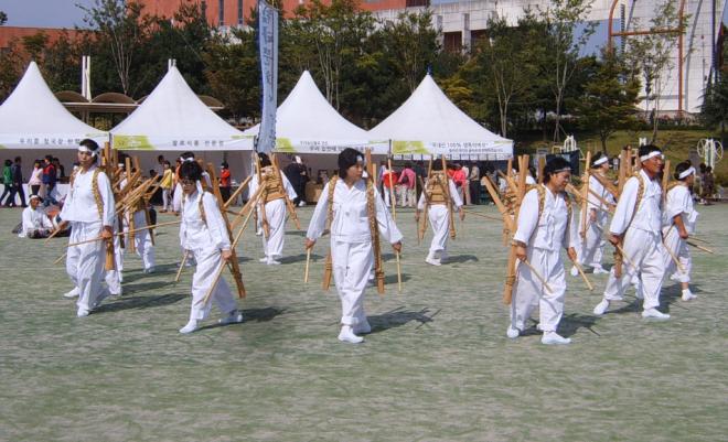 ÀüÅë Èò¿ÊÀ» ÀÔ°í Áö°Ô¸¦ Áû¾îÁø ÈÄ ÀÛ´ë±â·Î Áö°Ù´Ù¸®(¸ñ¹ß)¸¦ Ä¡¸ç Àå´ÜÀ» ¸ÂÃç ³ë·¡Çϴ dz°æÀÌ ³ó»ç¿¡¼ Èñ·Î¾Ö¶ôÀ» °®Àº ¿¾ ³ó¹ÎµéÀÇ »ýȰ»óÀ» º¸¿©ÁØ´Ù. ¾ç¹Ý°ú ²æ º¹ÀåÀ» ÇÑ À̵µ µîÀåÇÑ´Ù.