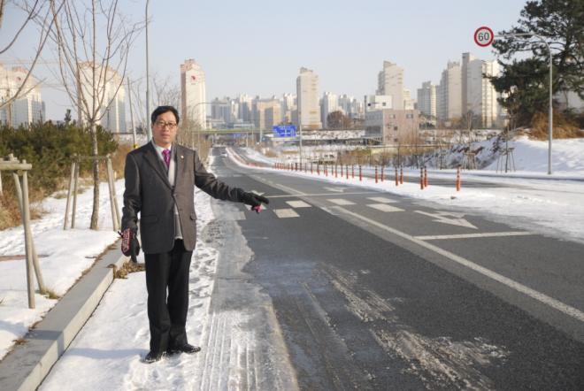 2007³â ¿À»ê¸é ¼ÛÇи®¿¡¼ ¿µ¸¸¸®±îÁö 1.2kmÀÇ 4Â÷¼± µµ·Î(¿ë¿¬¼±)À» Á¶¼ºÇϴµ¥ 52¾ï ¿øÀ» ÅõÀÔÇÏ°íµµ ±âº»½Ã¼³ÀÎ °¡·ÎµîÀ» ¼³Ä¡ÇÏÁö ¾Ê¾Æ ¿ë°ï¸¶À» ÁֹΠµî 280¿©¸íÀÌ Ä¥Èæ°°ÀÌ ¾îµÎ¿î ±æÀ» À§Çè ¼Ó¿¡ Áö³ª°í ÀÖ´Ù´Â °Í.