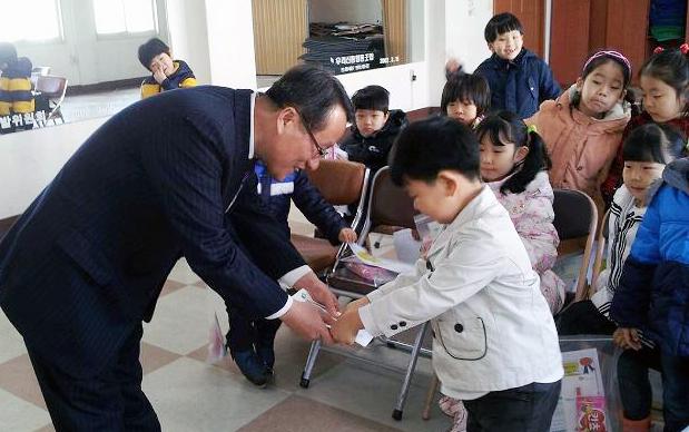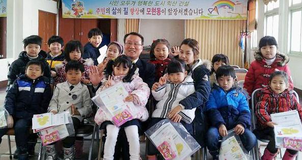 ÇÑ ¾ÆÀ̰¡ ´ëÇ¥·Î ³ª¼ ¸ðÇöµ¿ Áֹμ¾ÅÍ ±èÈ«´Þ µ¿Àå¿¡°Ô ¼º±ÝÀ» ÀüÇß´Ù.