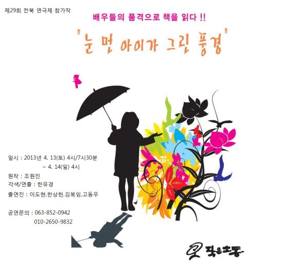 Á¦29ȸ ÀüºÏ¿¬±ØÁ¦ Âü°¡ÀÛÀÎ ¡®´«¸Õ ¾ÆÀ̰¡ ±×¸° dz°æ¡¯Àº ´«À» ¶ß°í ÀÖÀ¸¸é¼µµ °¨°í ÀÖ´Â °Íó·³ »ì°í ÀÖ´Â Çö´ëÀε鿡°Ô ÁøÁ¤ÇÑ ¾Æ¸§´Ù¿ò¿¡ ´« ¶ã °ÍÀ» Á¦¾ÈÇÑ´Ù.