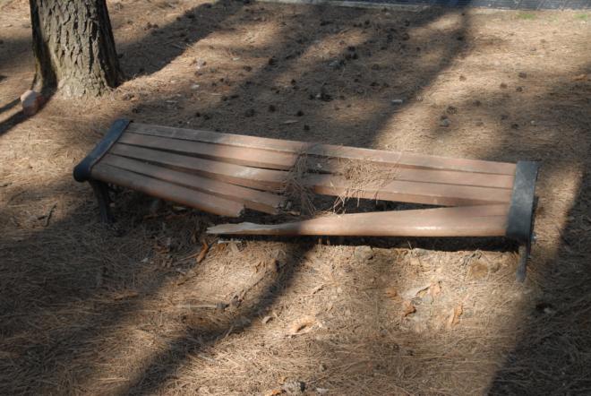 °ø¿ø ÀÔ±¸ º¥Ä¡ ÇÑ °³´Â ´©±º°¡ ÀϺη¯ ¸Á°¡¶ß¸° °Í °°Àº Çü»óÀ̾ú´Ù. ³ª¹«ÆÇ 4°³°¡ ºÎ·¯Áø ä ¹æÄ¡µÇ°í ÀÖ¾ú´Ù.