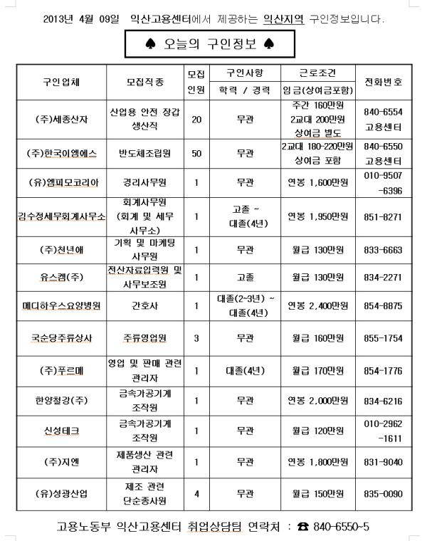 4¿ù 15ÀÏÀÚ ÀÍ»ê °í¿ëÁ¤º¸