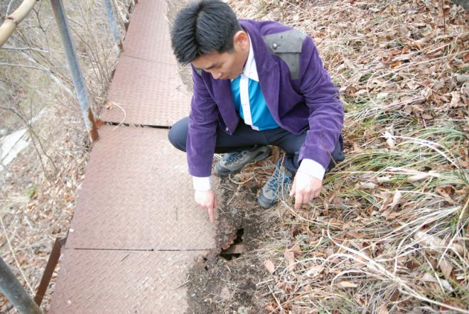 µî»ê°´ ¾ÈÀüÀ» À§ÇùÇÏ´Â ÀÌ Ã¶´Ù¸®´Â ¡®KT¹Ì¸¤»êÁß°è¼Ò¡¯ ¾Æ·¡¿¡ À§Ä¡ÇØ ÀÖ´Ù. Æø 70cm °¡·®ÀÇ Ã¶´Ù¸®´Â ¸ðµÎ 4°³. ¾âÆÅÇÑ ¼è±âµÕ¿¡ öÆÇÀ» ºÙÀÌ°í ¼èÁÙÀ» ¿«¾î ³õÀº °ÍÀÌ Çã¼úÇϱâ ¦ÀÌ ¾ø´Ù.