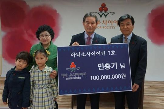 »ç¶ûÀÇ¿¸Å ¾Æ³Ê¼Ò»çÀÌ¾îÆ¼(Honor Society) 'ÀüºÏ 7È£' ȸ¿ø ¹ÎÃæ±â ÀÍ»ê½ÃÀÚ¿øºÀ»çÁ¾ÇÕ¼¾ÅÍ Àü ¼ÒÀå. ¹Î Àü ¼ÒÀåÀº 18ÀÏ »ç¶ûÀÇ¿¸Å ÀüºÏ»çȸº¹Áö°øµ¿¸ð±Ýȸ¿Í 5³â°£ 1¾ï ¿øÀ» ±âºÎÇϱâ·Î ¾àÁ¤À» ¸Î¾ú´Ù. ±âºÎ±ÝÀº ¹Î Àü ¼ÒÀåÀÇ Àǻ翡 µû¶ó µµ³» Àú¼Òµæ°¡Á¤ ÇлýµéÀÇ ÀåÇÐ±Ý Áö¿ø»ç¾÷À¸·Î »ç¿ëµÉ ¿¹Á¤ÀÌ´Ù.