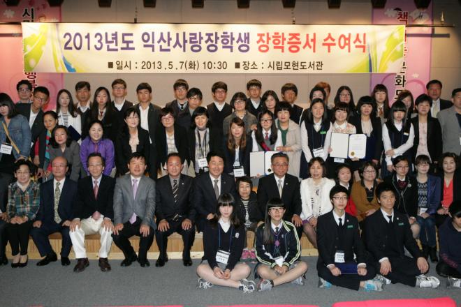 ÀÍ»ê»ç¶ûÀåÇÐÀç´Ü(ÀÌ»çÀå ÀÌÇѼö ½ÃÀå)Àº 7ÀÏ ÀÍ»ê ¸ðÇöµµ¼°ü¿¡¼ °Ç±¹´ë ¹èÀ¸¶ä Çлý µî 192¸í¿¡°Ô ÀåÇÐÁõ¼¸¦ ¼ö¿©Çß´Ù.