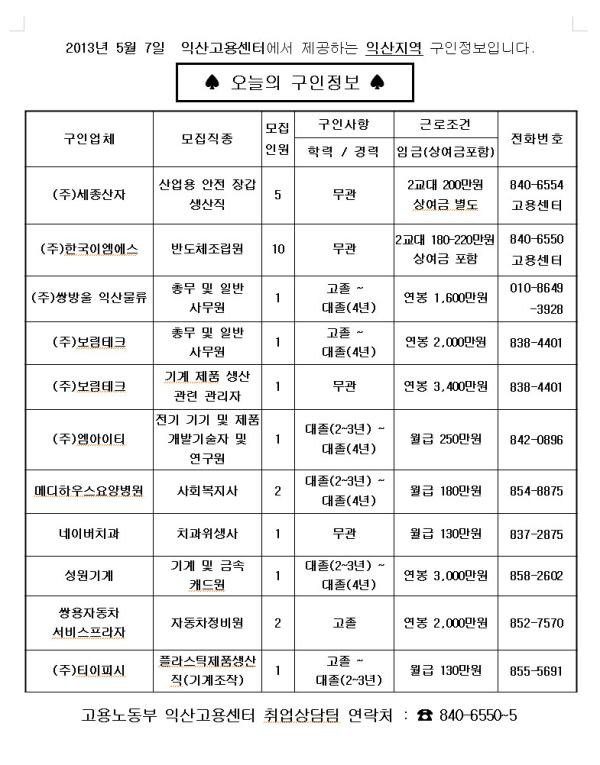 5¿ù 13ÀÏÀÚ ÀÍ»ê °í¿ëÁ¤º¸