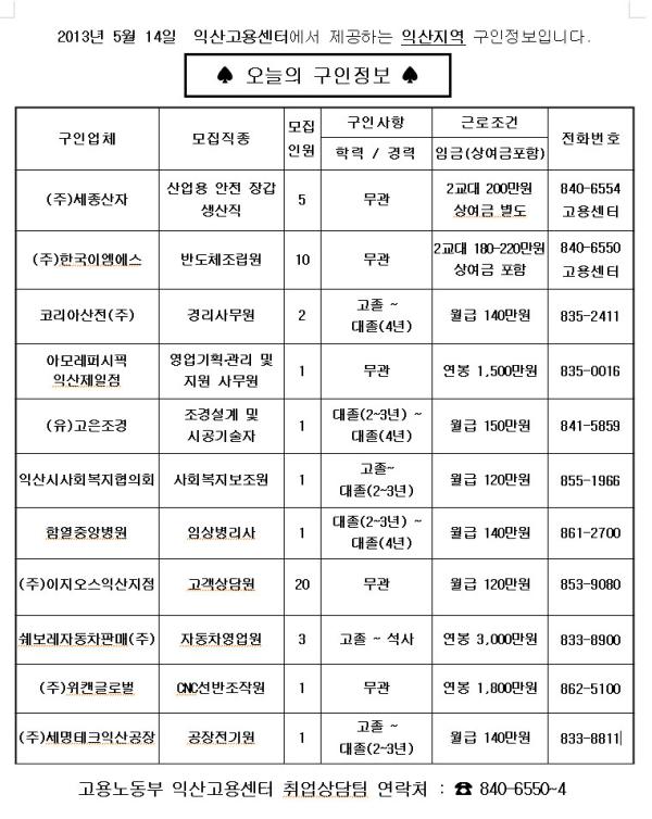 5¿ù 20ÀÏÀÚ ÀÍ»ê °í¿ëÁ¤º¸