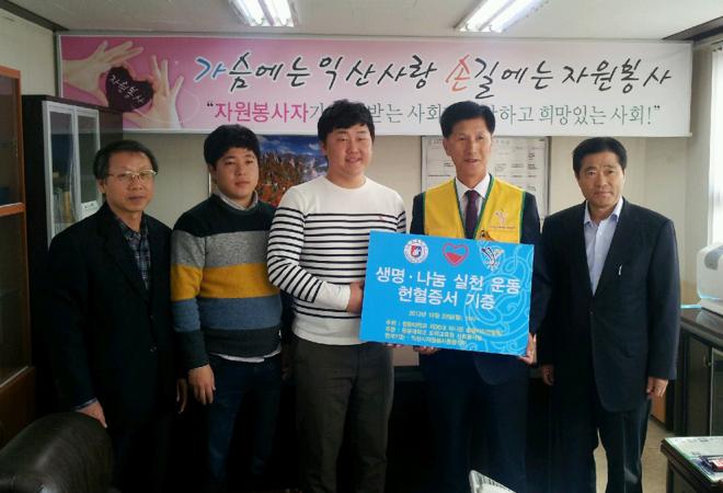 ¿ø±¤´ëÇб³(ÃÑÀå Á¤¼¼Çö)´Â »ý¸í ³ª´® ½Çõ ¿îµ¿ ÀÏȯÀ¸·Î Ãѵ¿¾Æ¸®¿¬ÇÕȸ ÁÖ°ü ¾Æ·¡ ÇåÇ÷ÁõÀ» ¸ð¾Æ ÀÍ»ê½ÃÀÚ¿øºÀ»ç¼¾ÅÍ¿¡ Àü´ÞÇß´Ù.